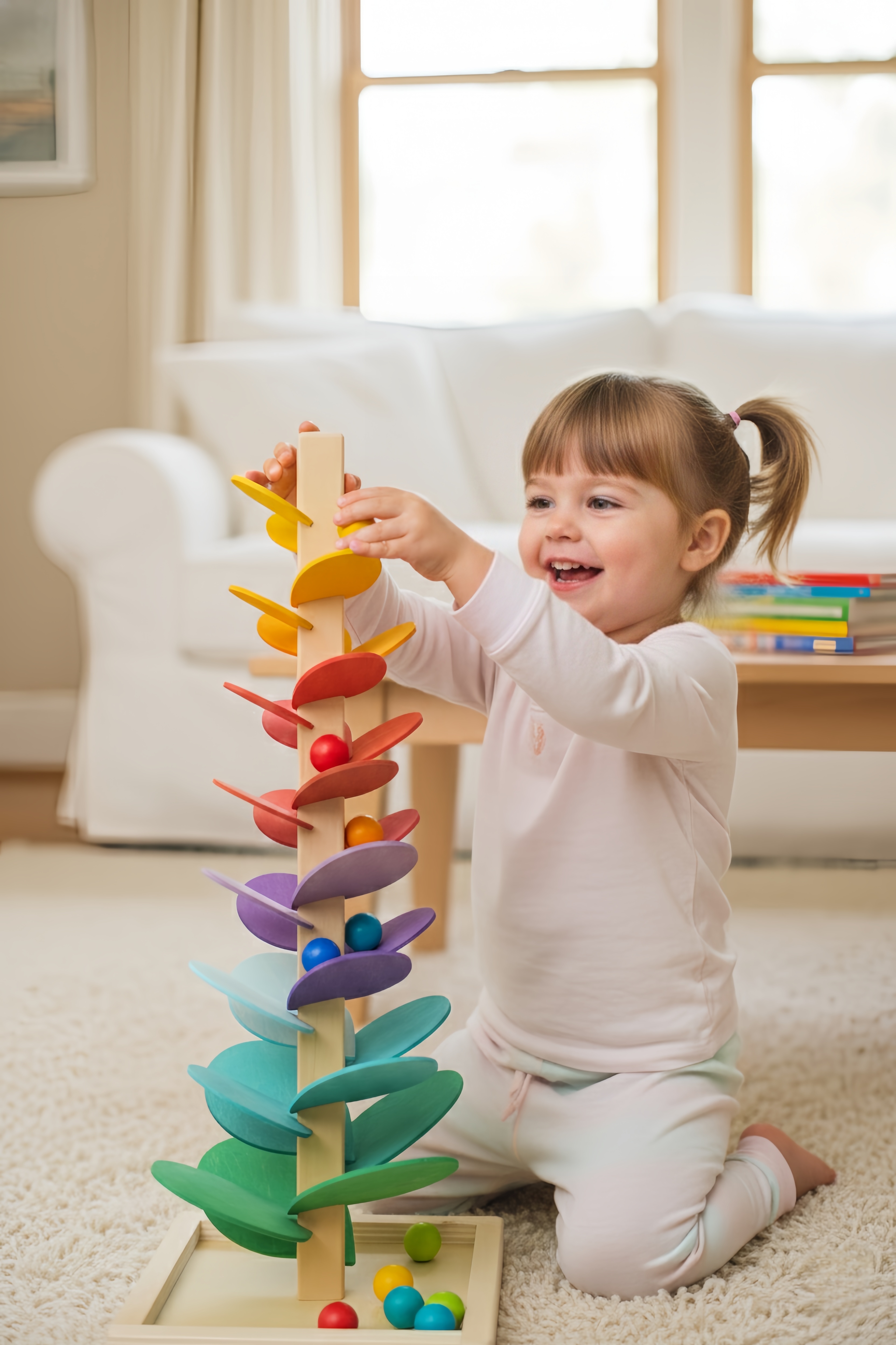 Encouraging independence in young children is an art as much as it is a developmental goal, and the design of the Rainbow Music Tree supports this naturally. Its ergonomic height and sturdy construction allow toddlers to explore without constant adult intervention, enabling them to learn through self-directed play. The choice of eco-friendly linden board and the smooth finish ensure safety even for the most eager little hands, while the non-toxic paint colors are vibrant enough to attract curiosity without overstimulation. This balance of aesthetic appeal and functional design places it among the best wooden toys appreciated by caregivers who prioritize safe, non-electronic options. The toy’s portability and two size options make it adaptable to various play spaces, offering flexibility that suits diverse living and educational environments where wooden toy sales often focus on compact, versatile options. The tactile interaction—grasping and rolling balls, watching motion and sound unfold—builds confidence and enhances hand-eye coordination. As toddlers engage repeatedly with the toy on their own terms, they cultivate a sense of achievement and autonomy that prepares them for more complex challenges ahead, reinforcing the importance of toys that invite exploration without needing constant direction.