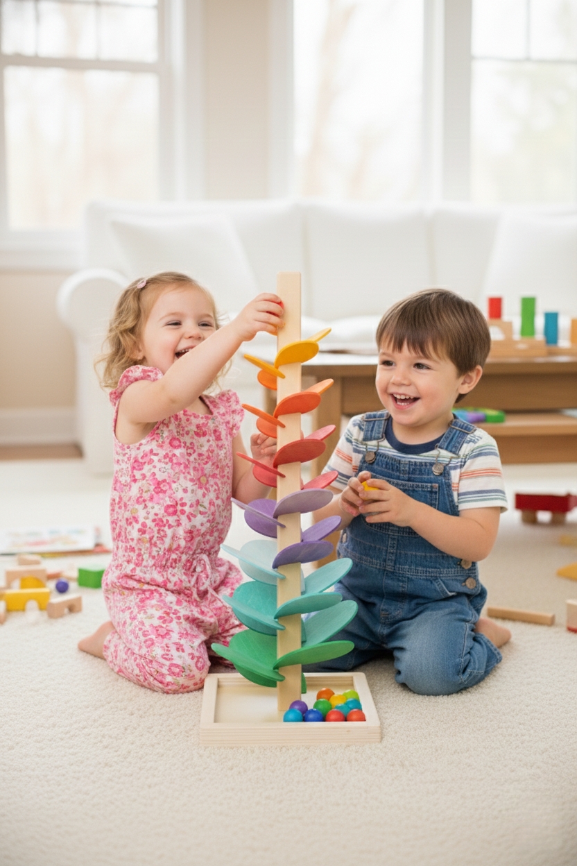 Auditory discrimination and hand-eye coordination are foundational skills in toddler development, providing pathways for cognitive and motor growth simultaneously. Wooden toys, especially those that include interactive sound features, stand out as excellent tools for encouraging these abilities. For instance, sensory toys like the Rainbow Music Tree are designed so that as toddlers release balls down its colorful leaves, they engage multiple senses: they track the motion visually, hear melodic tones, and develop timing skills through cause-and-effect interactions. This combination helps toddlers refine their ability to differentiate sounds and improve coordination steadily. The tactile feel of wood adds an additional dimension compared to plastics—its texture offers subtle resistance and warmth that storytelling moments alone cannot replicate. Choosing from the best wooden toys ensures that toddlers experience robust and safe stimuli in play, aligning with developmental goals while also promoting focused attention and curiosity. Such toys not only entertain but subtly train essential motor and sensory skills that will support more complex learning challenges ahead.