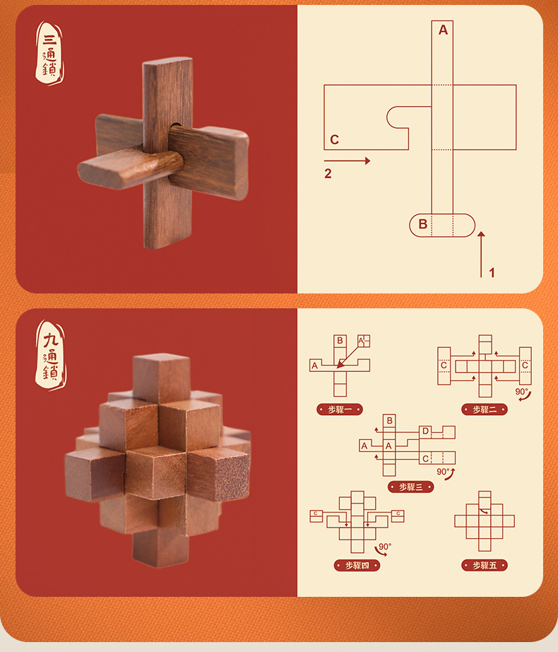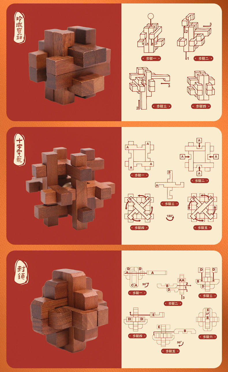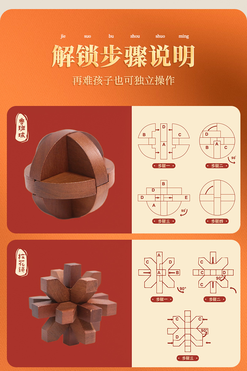 Currently, this is a Chinese - style product with descriptions in Chinese. But here’s exciting news: We will be launching fully English - language Kongming Lock products soon! Whether you’re a lover of Chinese traditional culture or simply a fan of engaging puzzles, stay tuned for this update. But why wait? Grab this Chinese - style Kongming Lock set now and start your journey of unlocking ancient wisdom!