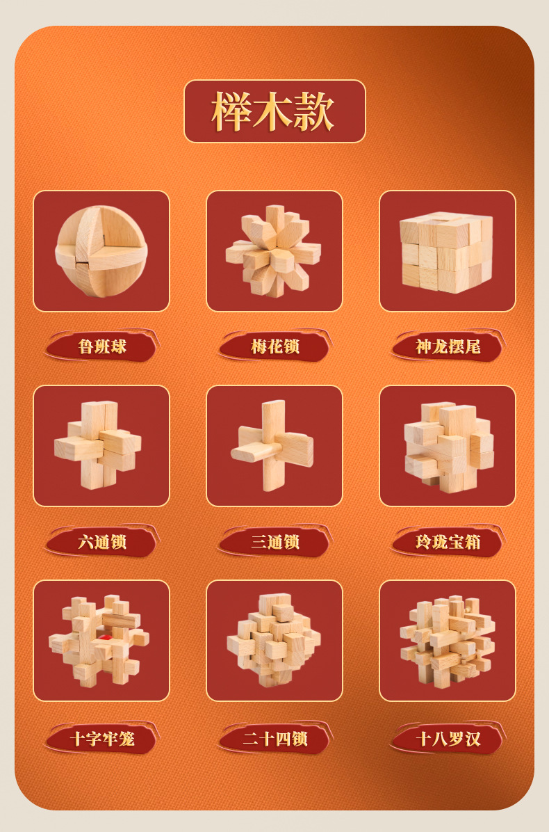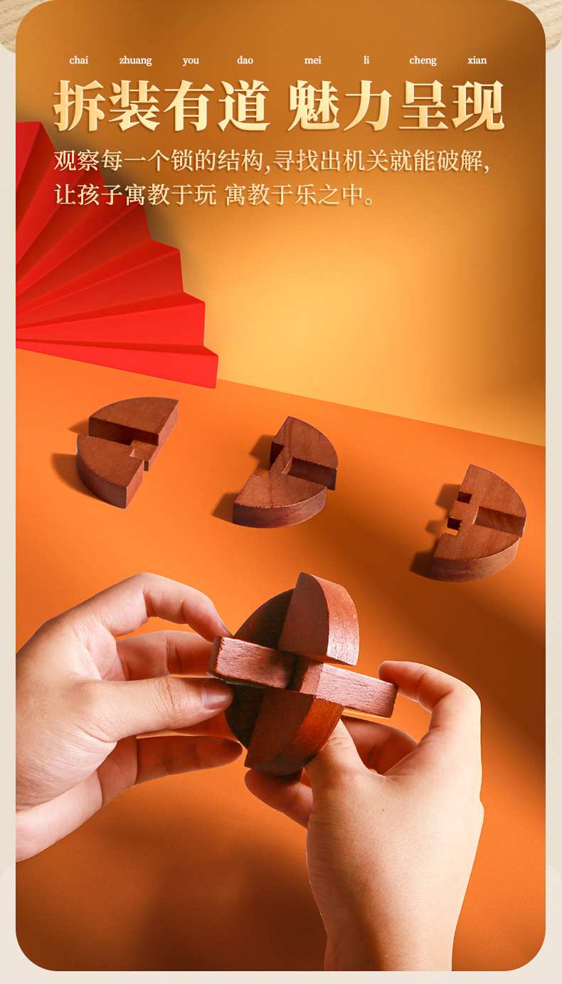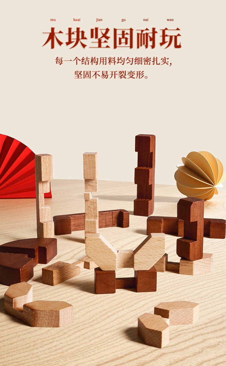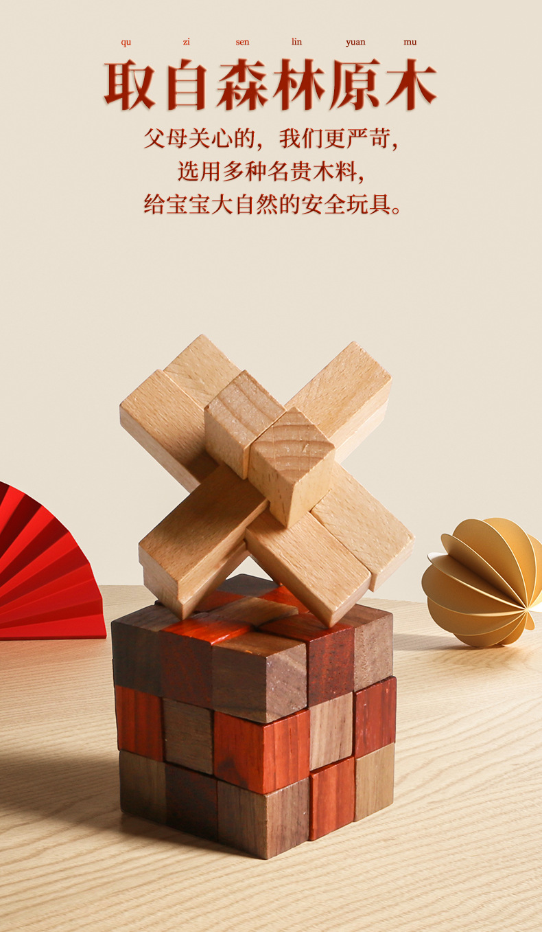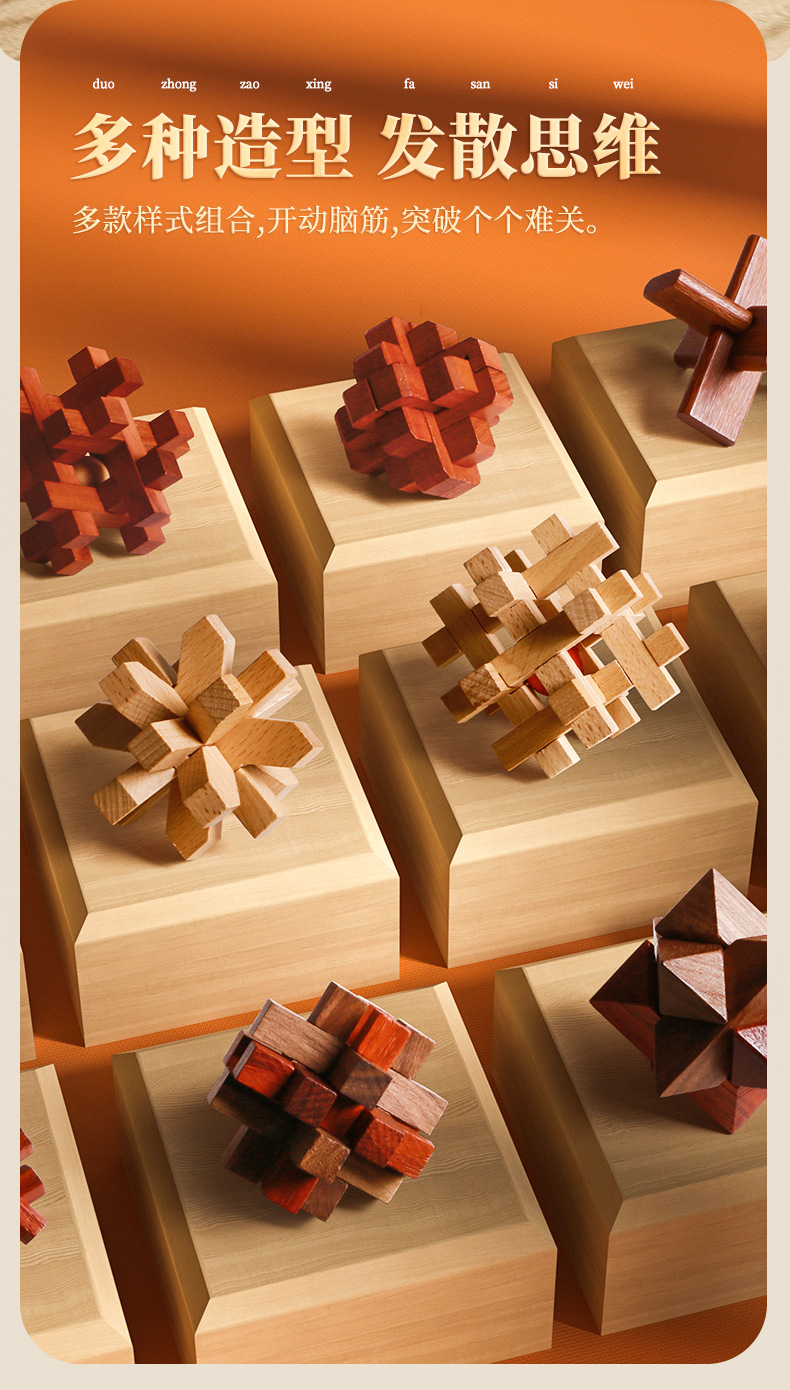 Natural Wood Material: Sourced from high - quality forest logs, we use precious wood varieties to craft each Kongming Lock. Rest easy knowing it’s a safe choice for kids, bringing a warm touch of nature into your home. The dense, solid wood ensures the Kongming Lock is sturdy and durable—resistant to cracking or deformation, so it can withstand countless hours of play.
