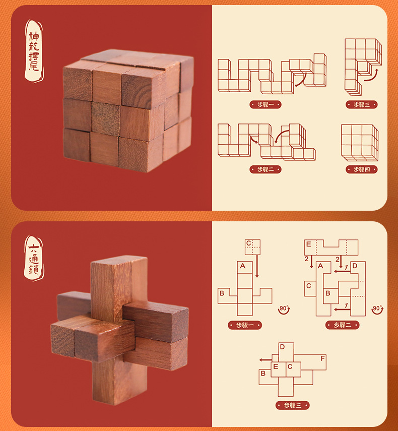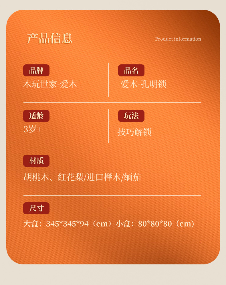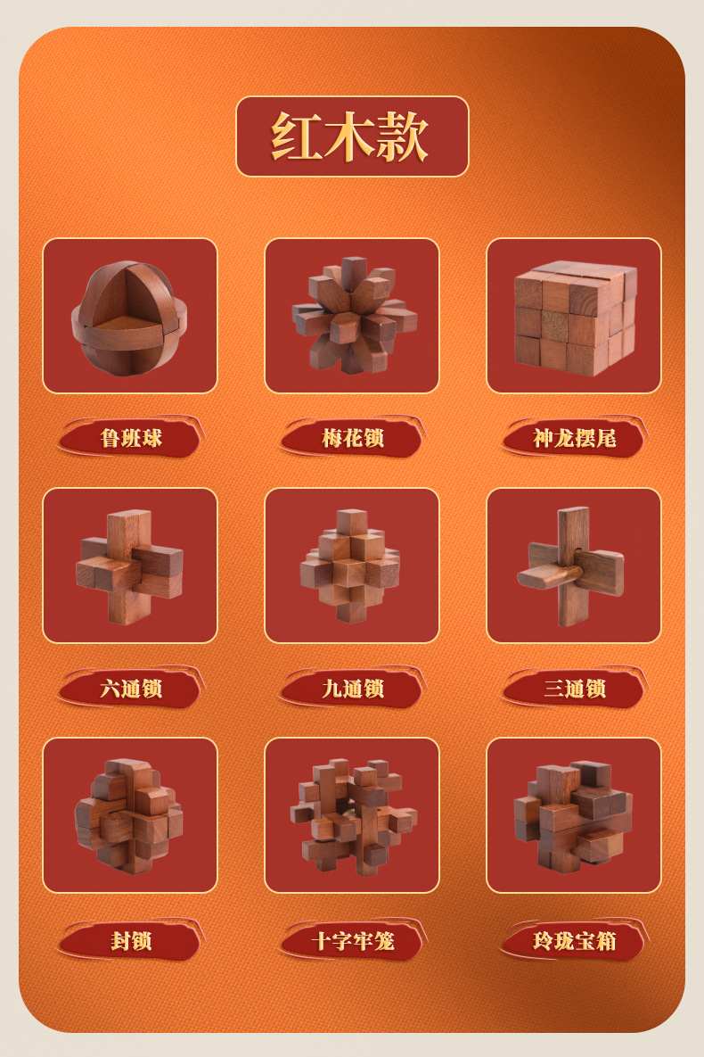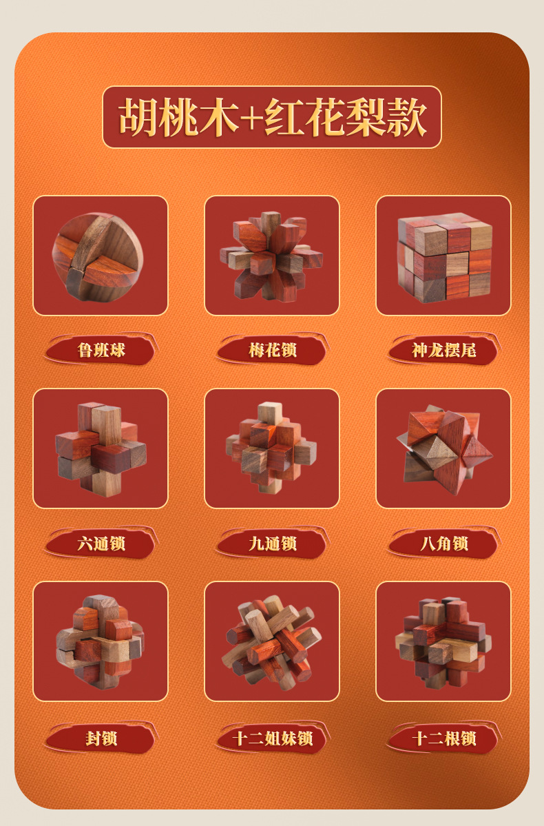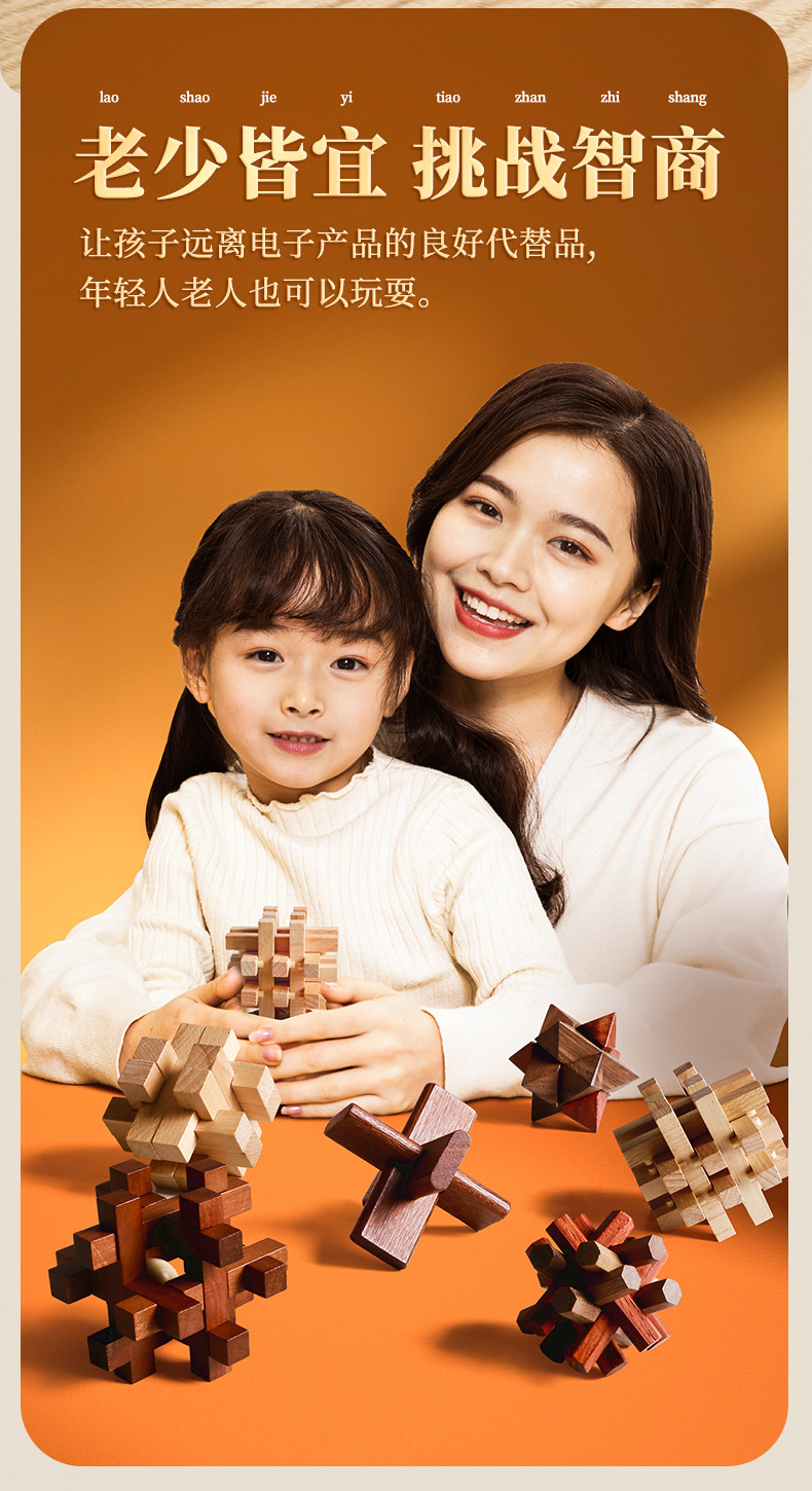 Natural Wood Material: Sourced from high - quality forest logs, we use precious wood varieties to craft each Kongming Lock. Rest easy knowing it’s a safe choice for kids, bringing a warm touch of nature into your home. The dense, solid wood ensures the Kongming Lock is sturdy and durable—resistant to cracking or deformation, so it can withstand countless hours of play.