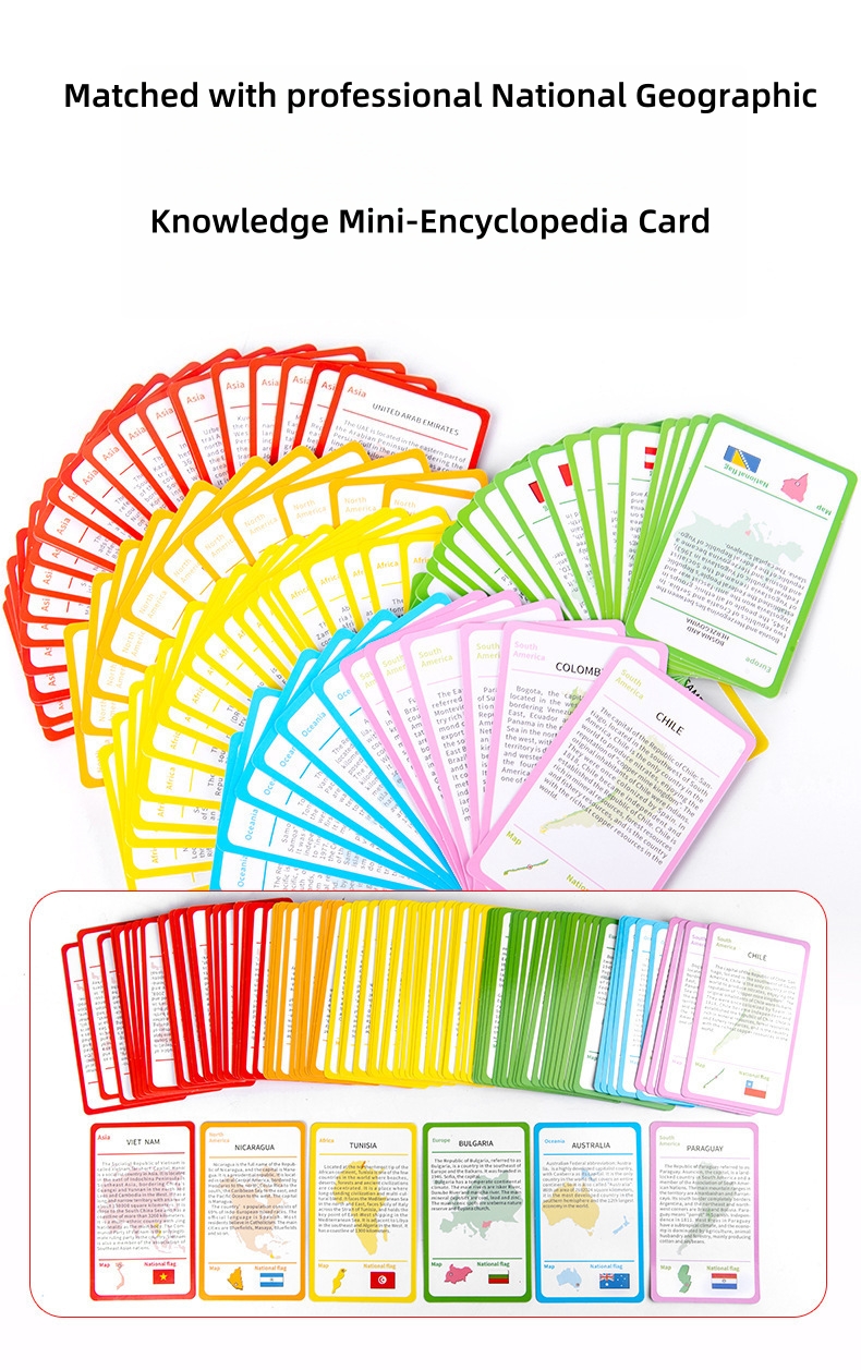 It's a double - sided puzzle! One side is world geography, the other features world flags. Kids can explore both 地理 (geography) and 人文 (humanities). Plus, it comes with 92 geography knowledge cards covering 184 countries, expanding learning beyond the puzzle.