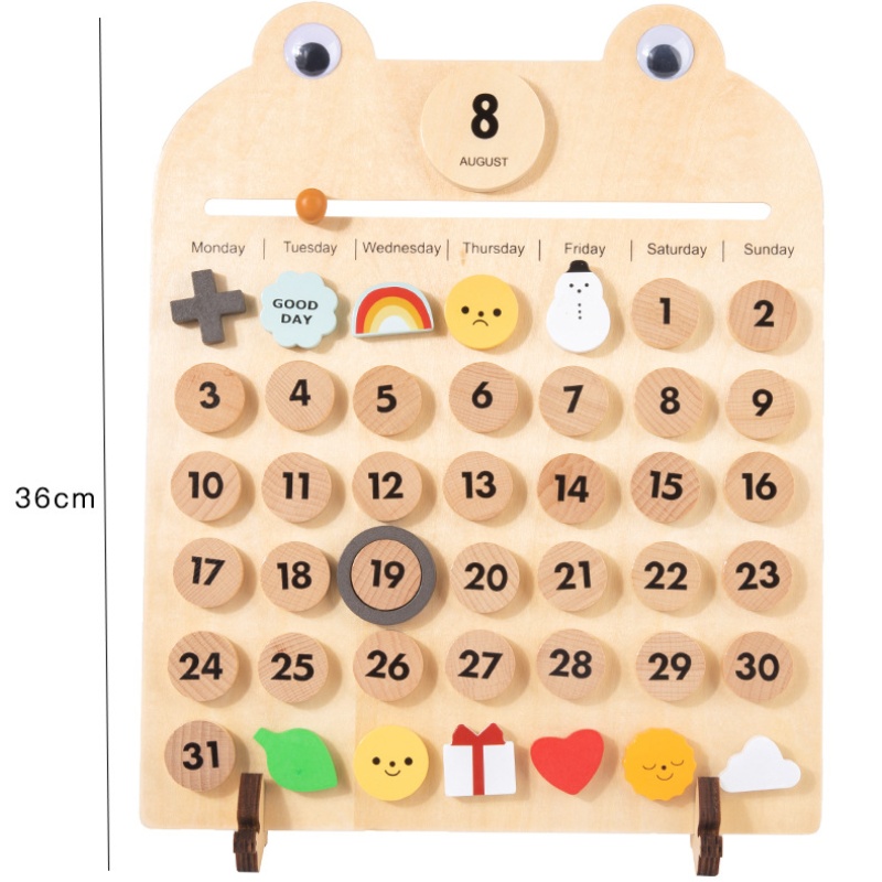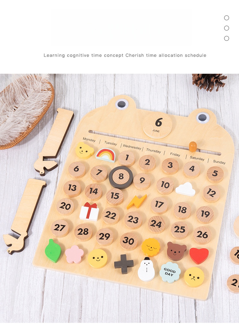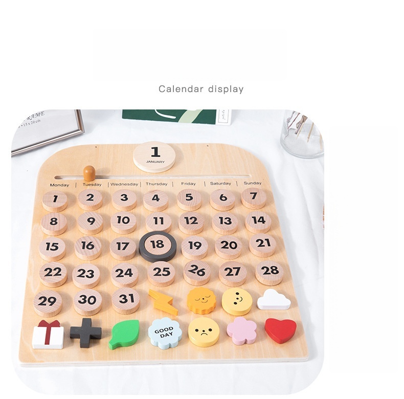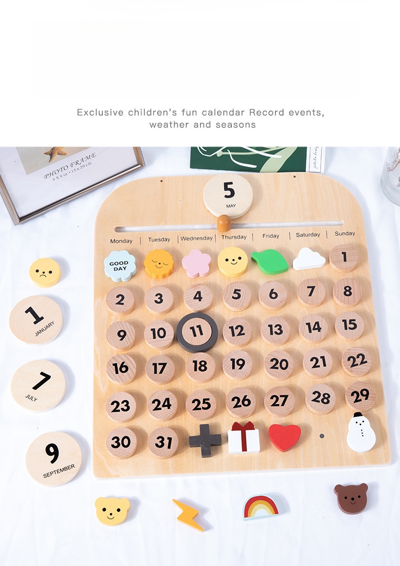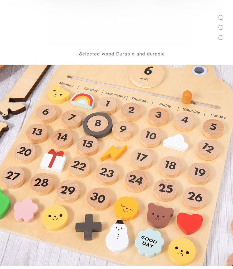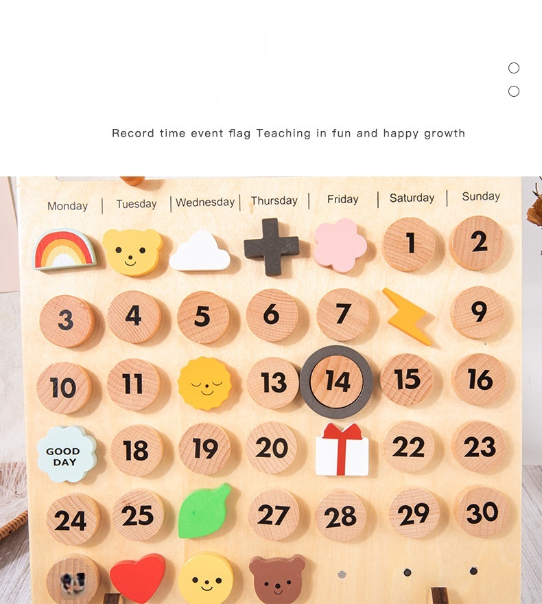 This adorable wooden calendar toy is perfect for little ones to learn about time, dates, months, and more! With cute shapes like smiley faces, rainbows, and gifts, it turns time - learning into a fun game.